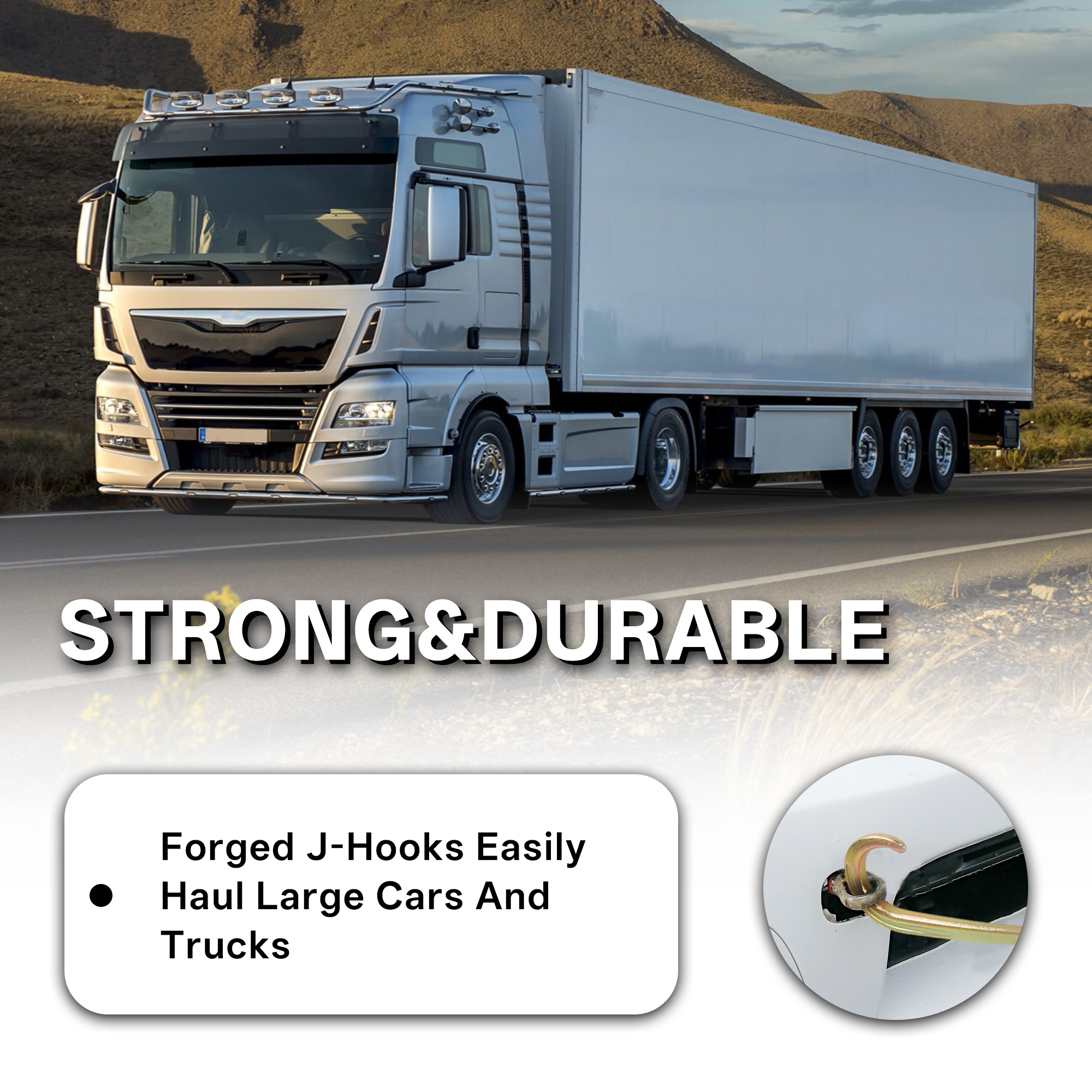The 70-grade forged towing J-hook is extremely robust and ideal for towing heavy vehicles.