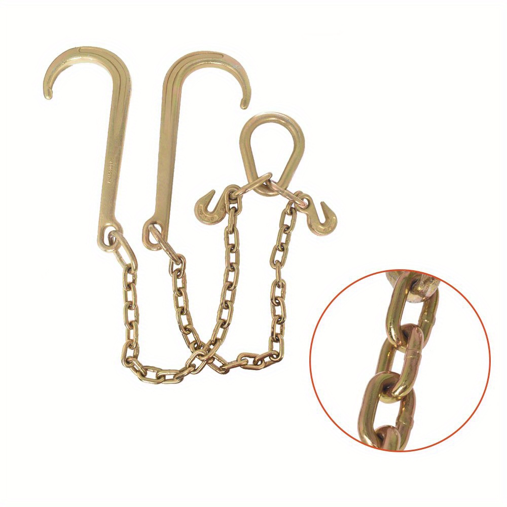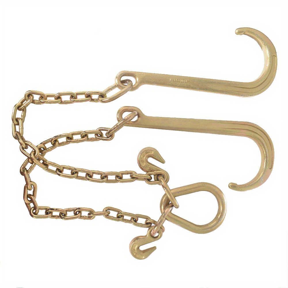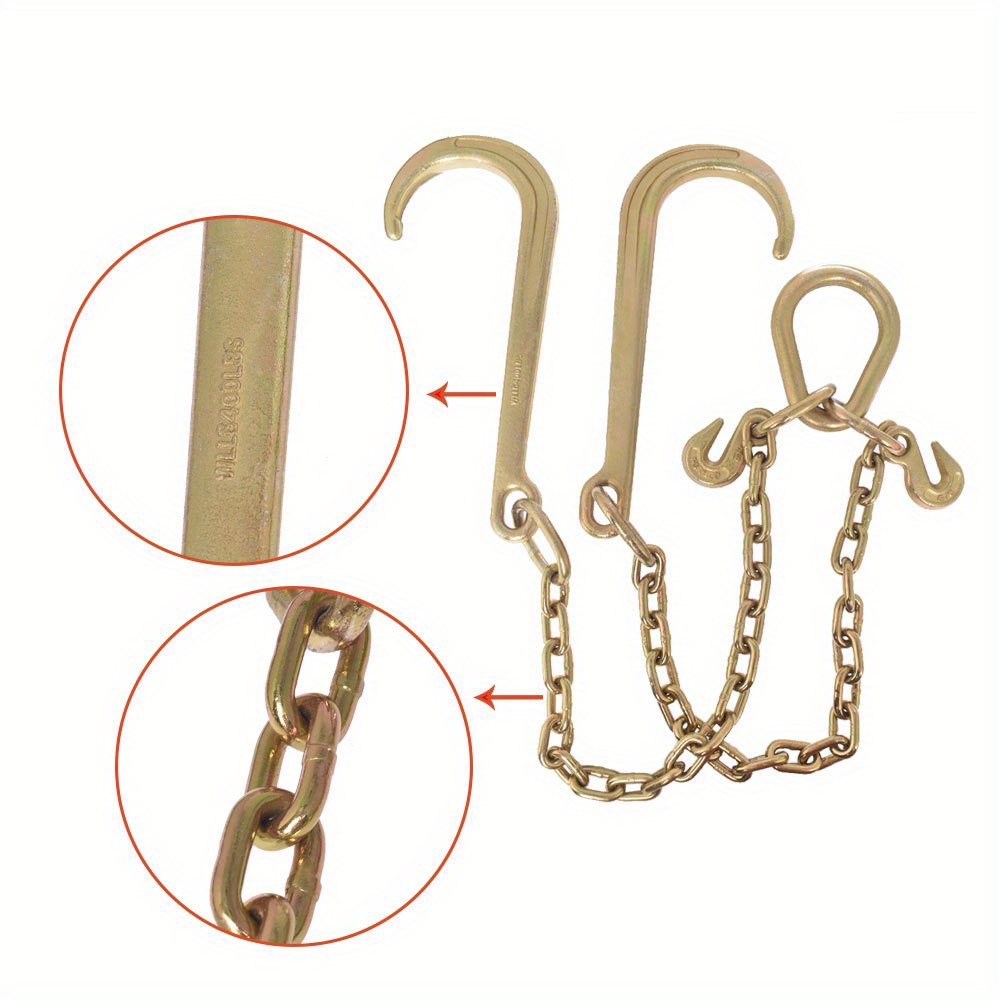 J-Hooks and V-Chain Grab Hooks for Tow Chains, measuring 5/16″ and 2 feet in length, featuring grade 70 J-hooks at each end along with two V-chain grab hooks.