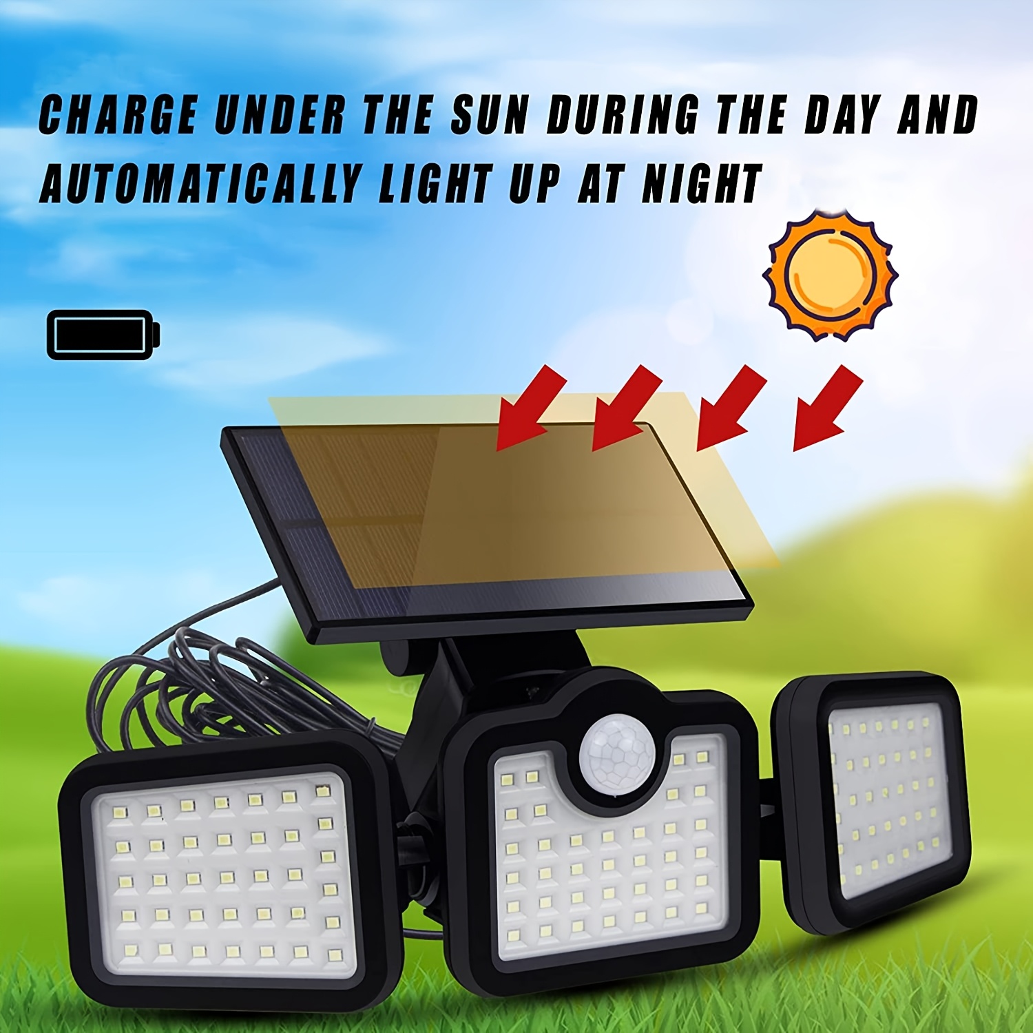 Solar Outdoor Light With Remote Control, 3-Head Motion Sensor Lamp, 5000 Lumens 108 LEDs Safety Light, 270° Wide Angle Floodlight, Wall Lights In 3 Modes For Patio, Garden, Shed, Garage
