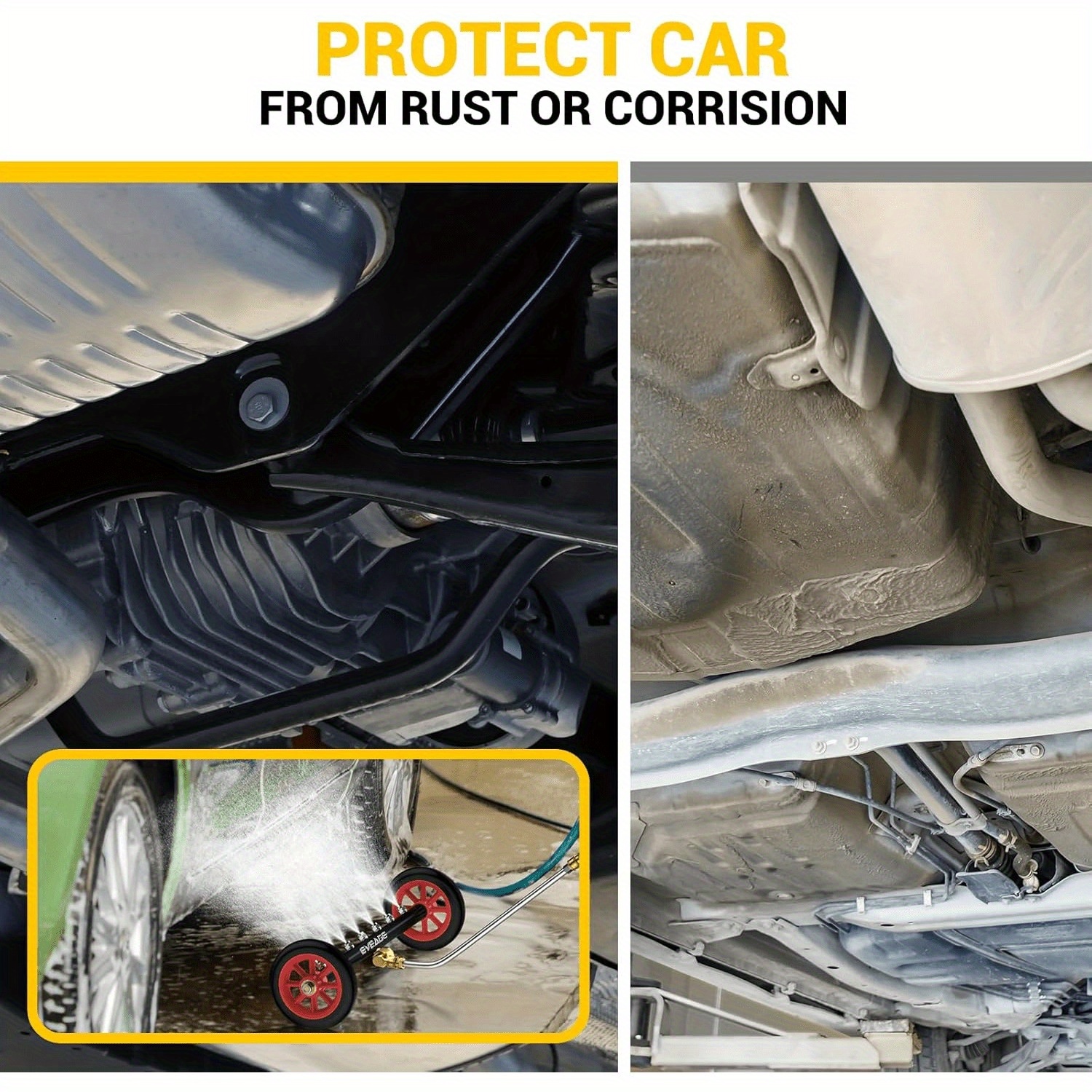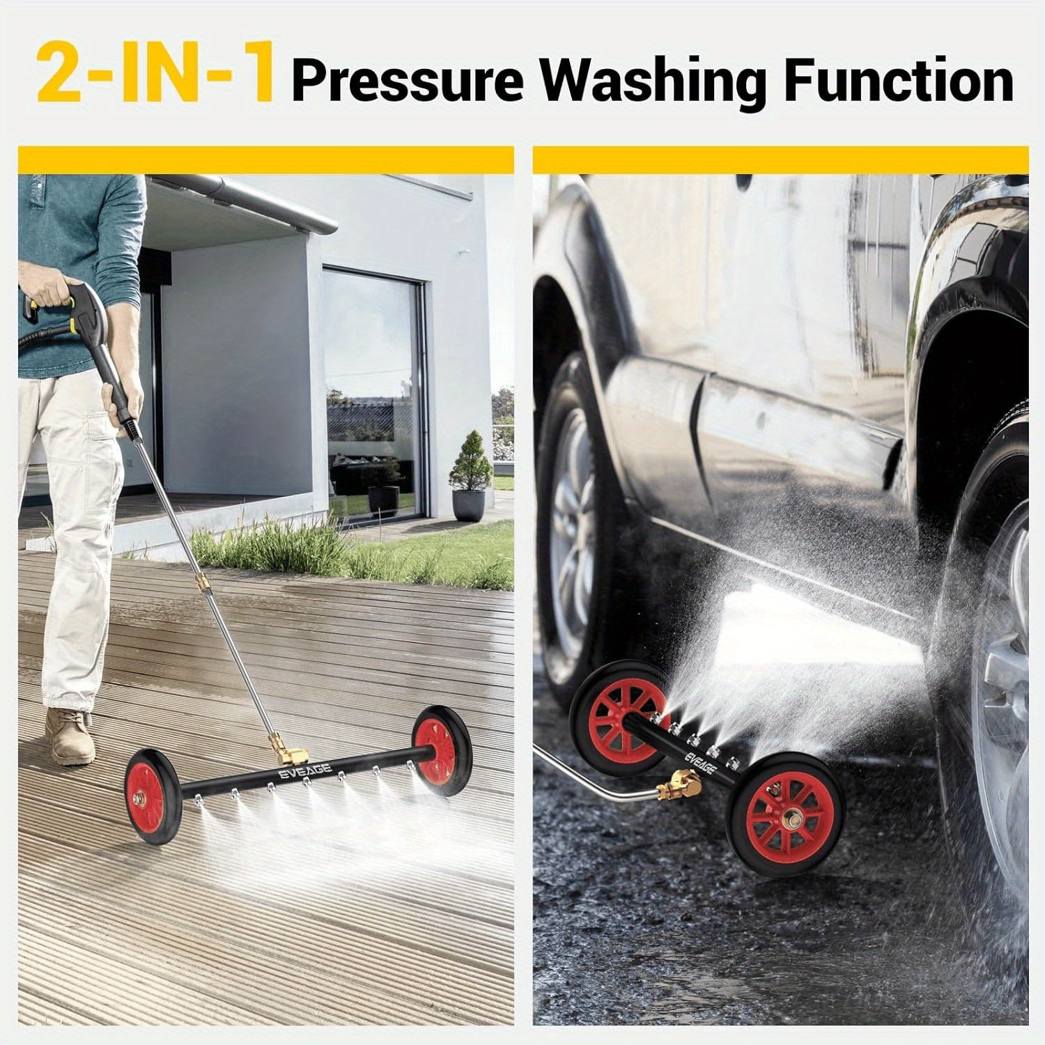 This all-in-one pressure washer attachment allows for seamless transitions between cleaning the vehicle undercarriage and tackling driveways, sidewalks, or other flat surfaces, saving you time and effort.