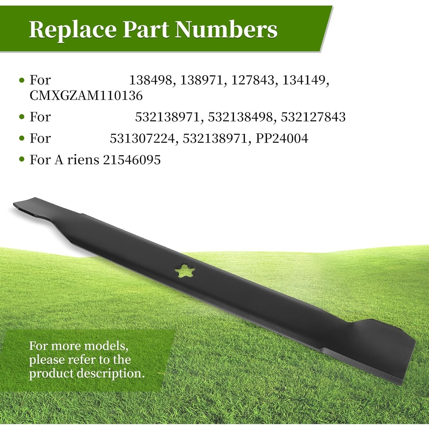 Our 138971 blades are compatible with a range of models, such as LT1000, LT2000, YT3000, YT4000, YS4500, and others; including Husqvarna LT125, LTH130, YTH1842, YTH20F42T, YTH2042, etc.; Poulan Pro PB19H42YT, PB195H42LT, PB145G42, PB15542LT, PD17542LT, among others; for a full list of compatible models, please check the detailed description.