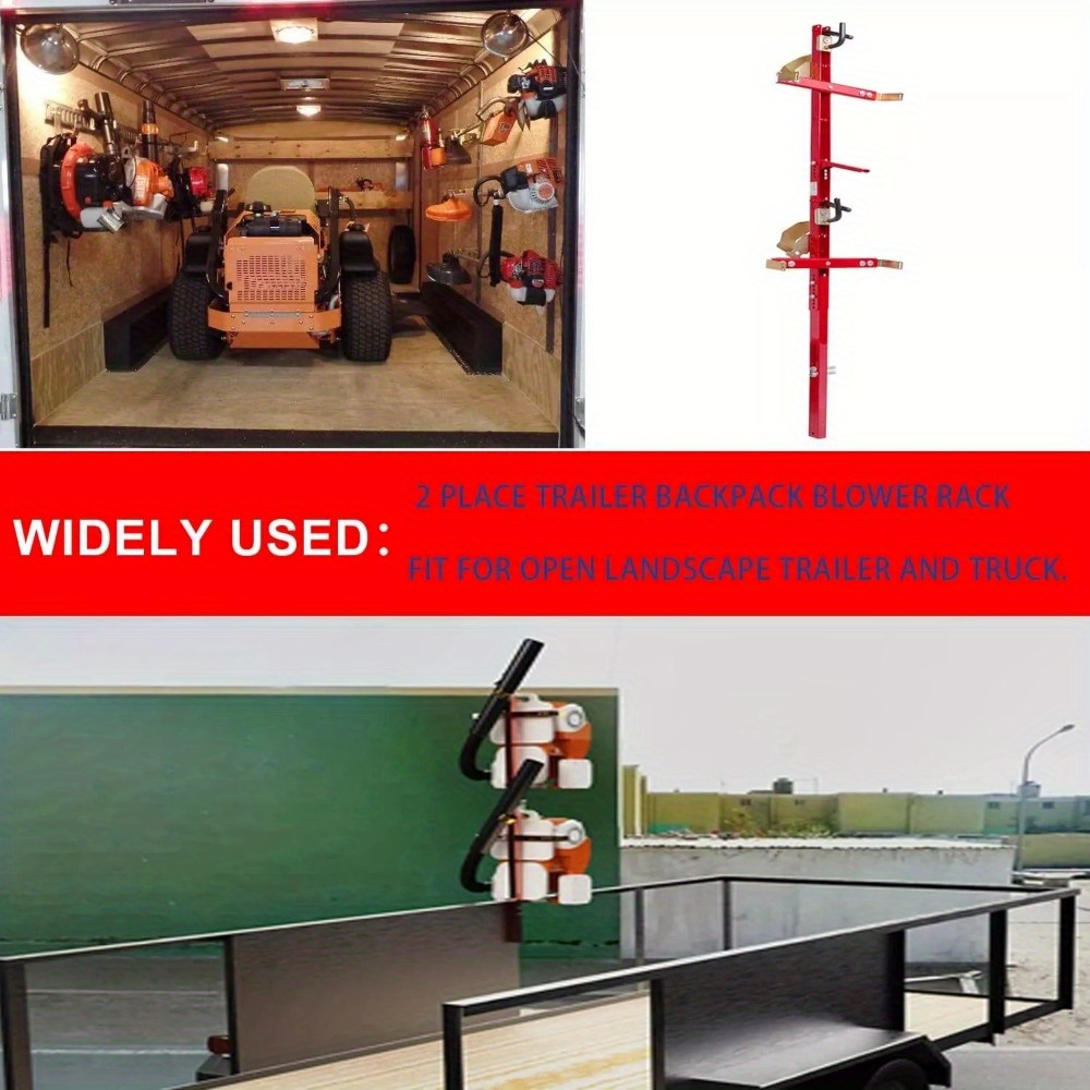 【Fitment】2 Place Trailer Backpack Blower Rack Fit For Open Landscape Trailer And Truck.You Also Can Mount The Equipment Rack On The Inside Wall Of An Enclosed Trailer, Making The Most Of The Space In Your Cargo Trailer.