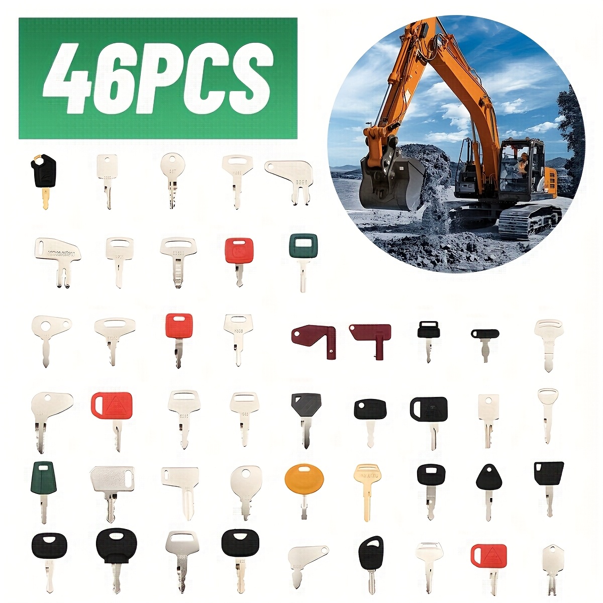 46pcs Heavy Equipment Keys Set, Yard Firm Construction Machinery Keys Set for Cat Catrepillar Komatsu Kubota for VolVo Case JCB Hyster JLG Yanmar Takeuchi New Holland Heavy Equipment-Key Shells