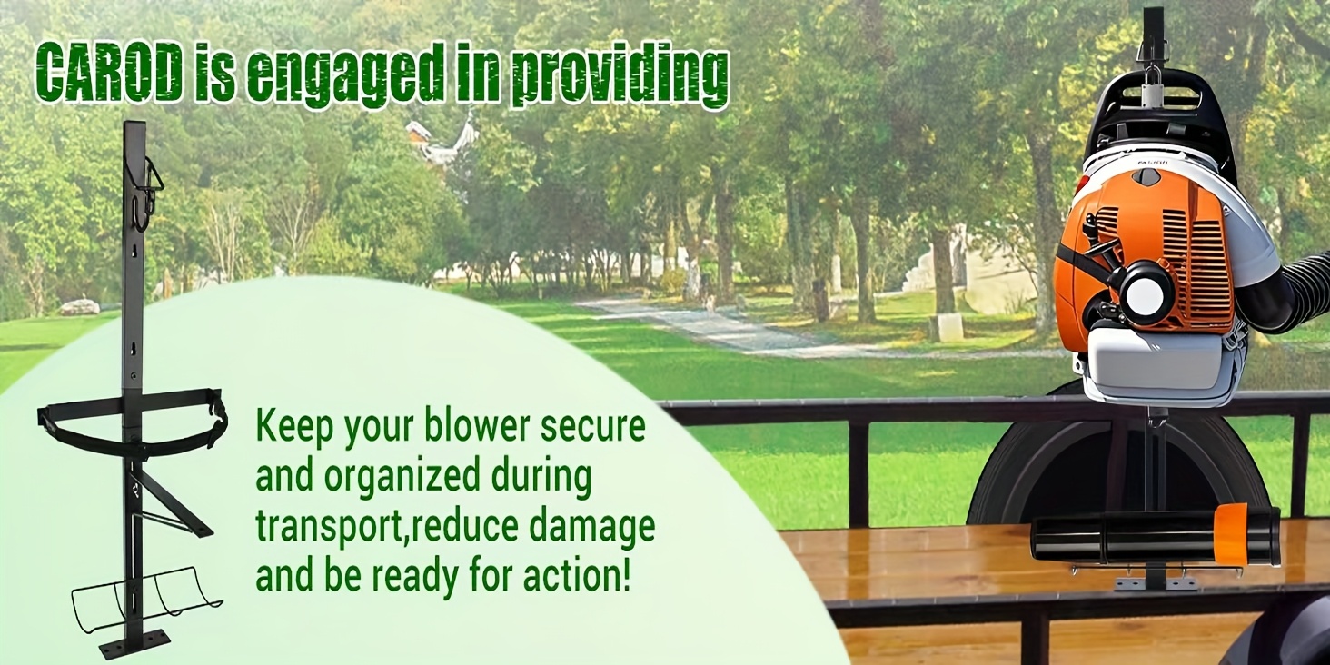 This device includes a push-on buckle that firmly secures the blower’s handle, and it has a designated hole for a lock pin (lock not provided) to ensure it can be locked when you set it down temporarily. The reinforced support base and the elastic strap help reduce vibrations and protect against damage, enhancing safety and stability while in transit!