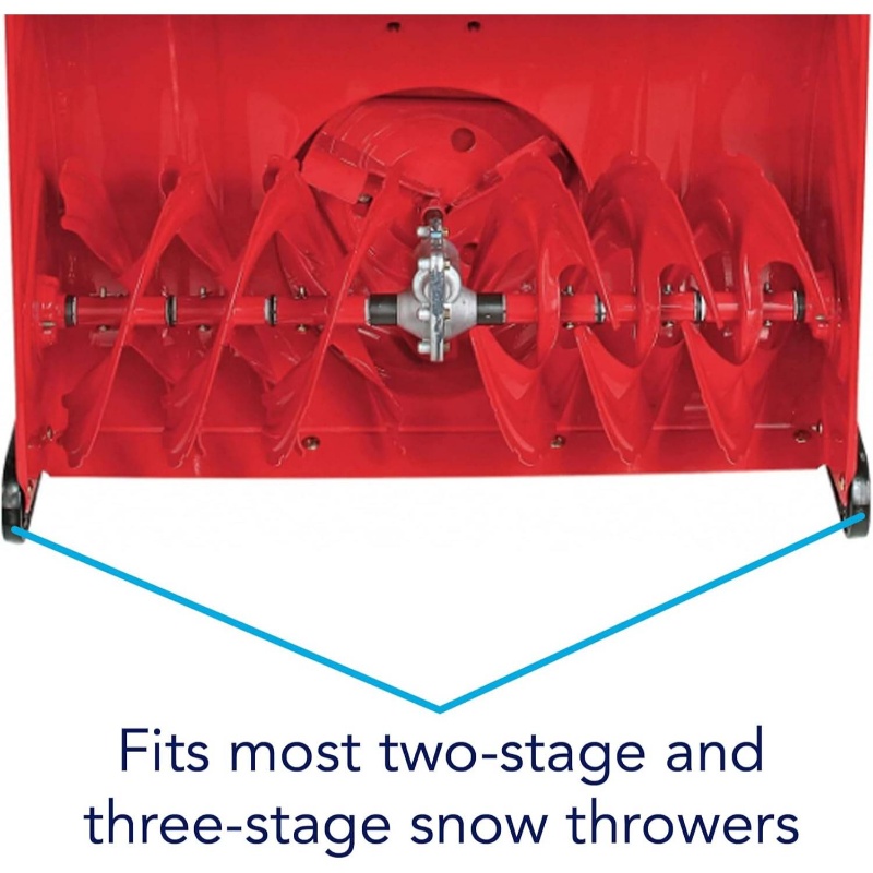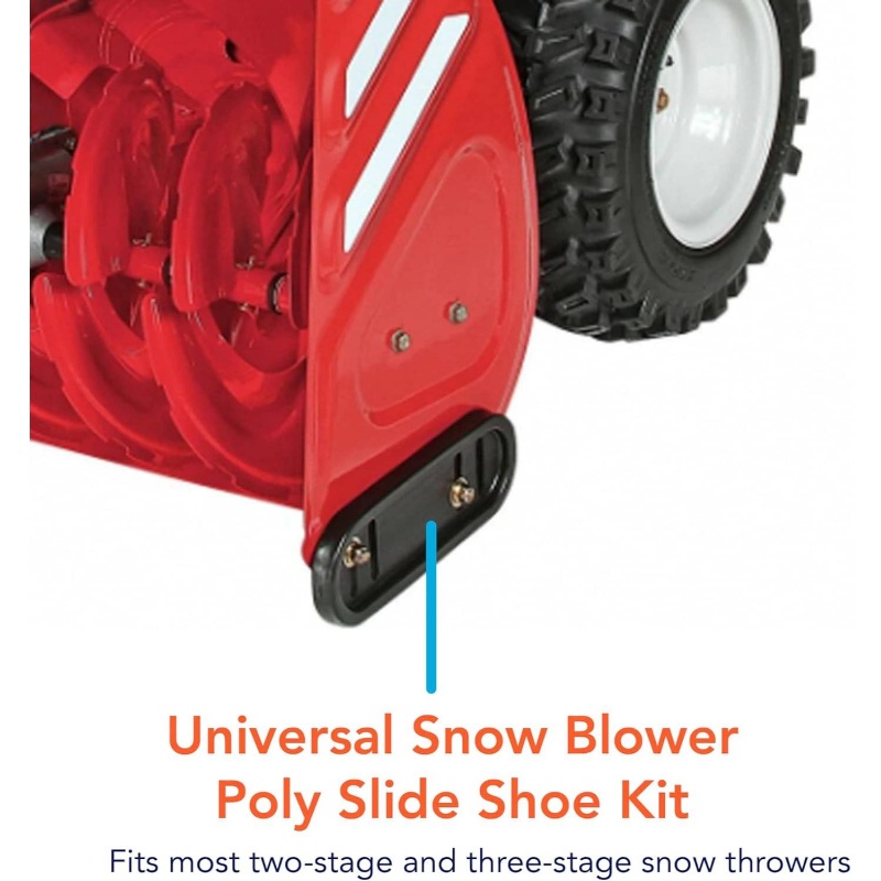 Universal snow thrower slide shoes model 490 – 241 – 0010, compatible with most two-stage and three-stage snow throwers, crafted from durable polyurethane and comes with mounting hardware.