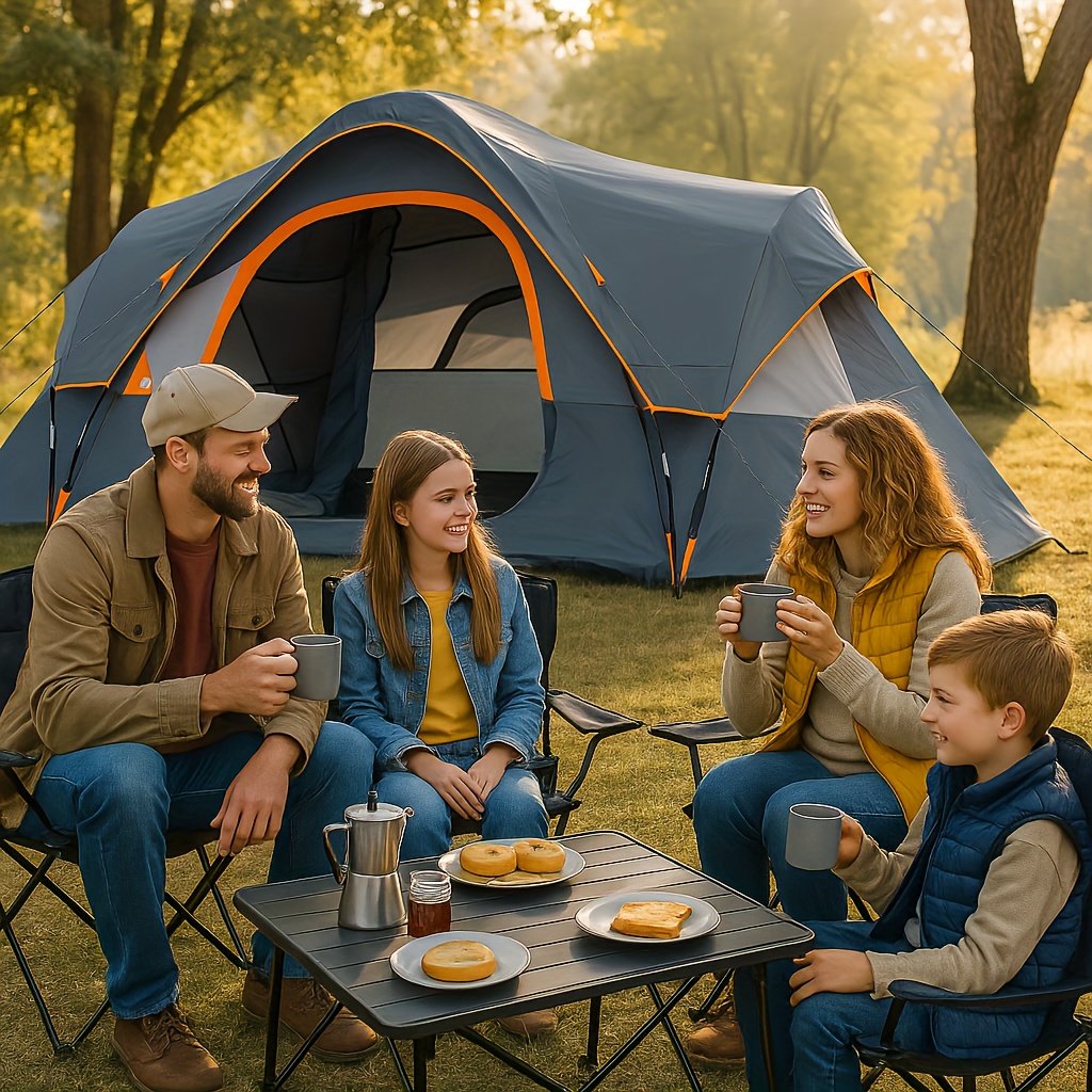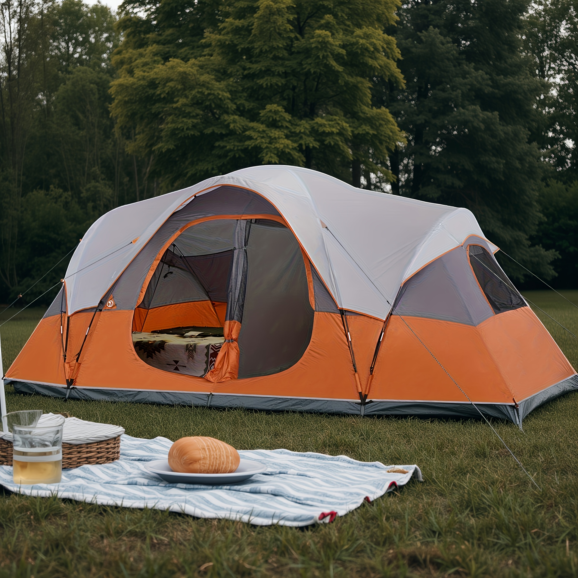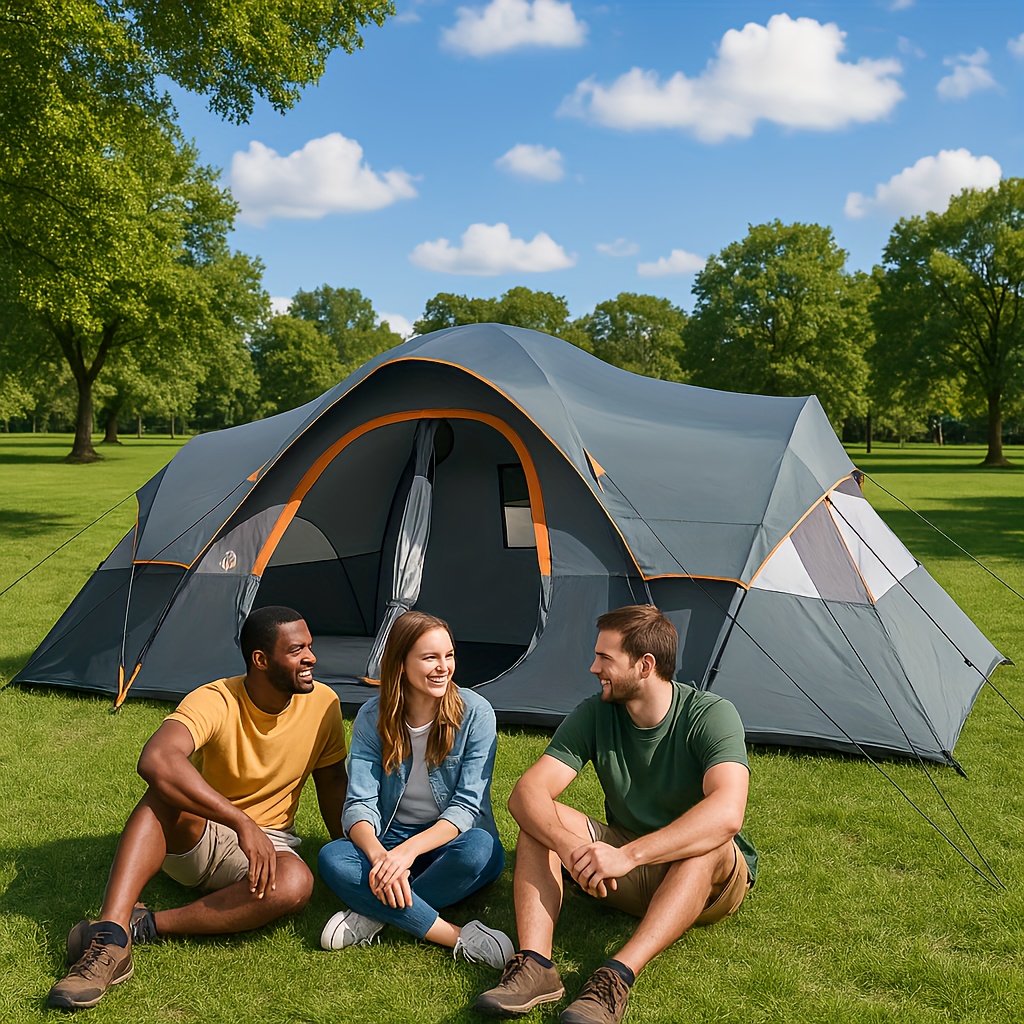 Transform each camping experience into a family journey with a spacious 10-person tent designed for comfort and bonding.
