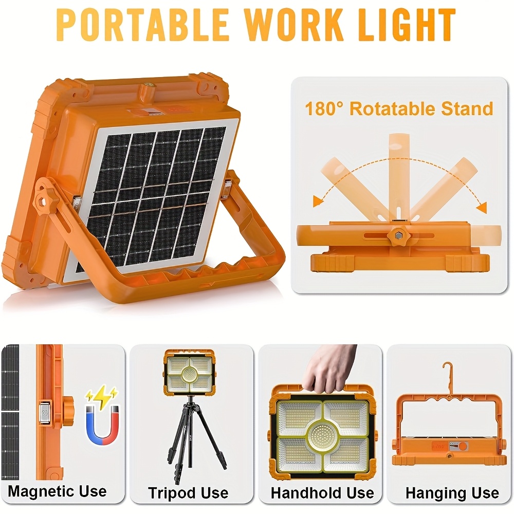 12000mAh Solar-Powered LED Work Light with 466 LED 10000LM Bright Light, 5-in-1 Yard Firm Power Bank, /DC//Off & Mode Switch, Over-Voltage/Over-Heat/Over-Current/Over-Temp, Portable Outdoor Lighting for Camping, Emergency, Construction, Workshop – Heavy-Duty Commercial/Residential Use, Orange & Black, -C Fast Charging, Solar Charging System Included, Solar Charger With Power Bank And Cor, Solar Light, Solar Sensor Light, Solar Panel Light, Solar Wall Light
