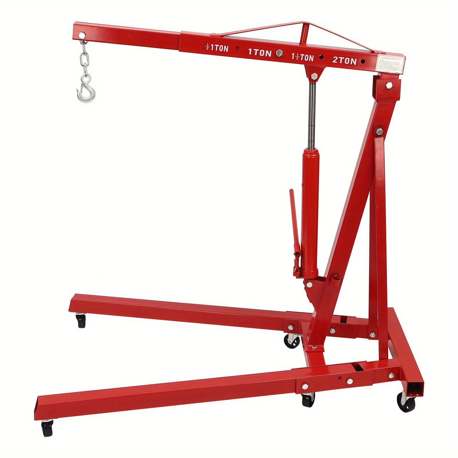 2 Ton Collapsible Engine Lifting Crane, Sturdy Carbon Steel with 6 Iron Caster Wheels (Red) Description