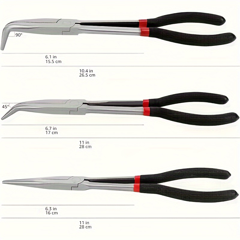 1. Extra Long Size: This needle nose pliers are designed with 11 inches extension to provide more room for maneuvering and stronger gripping ability.