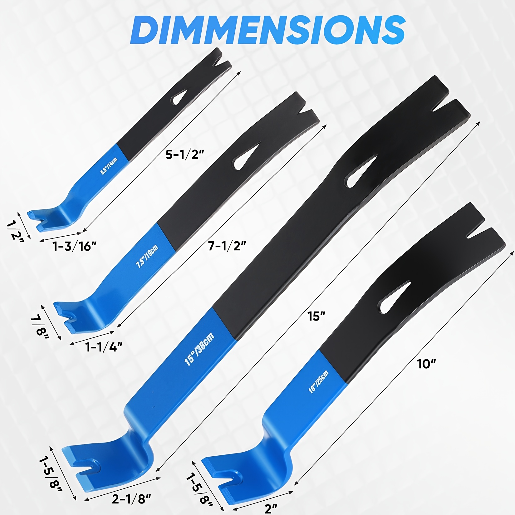 4pcs Flat Pry Bar Set -15″ 10″ 7.5″ 5.5″- Heavy Duty & Yard Firm Mini Nail Puller Crowbar, Utility Claw Bar, Wonder Bar, High-Carbon Steel Flat Bar Tool for Home Remolding & Woodworking